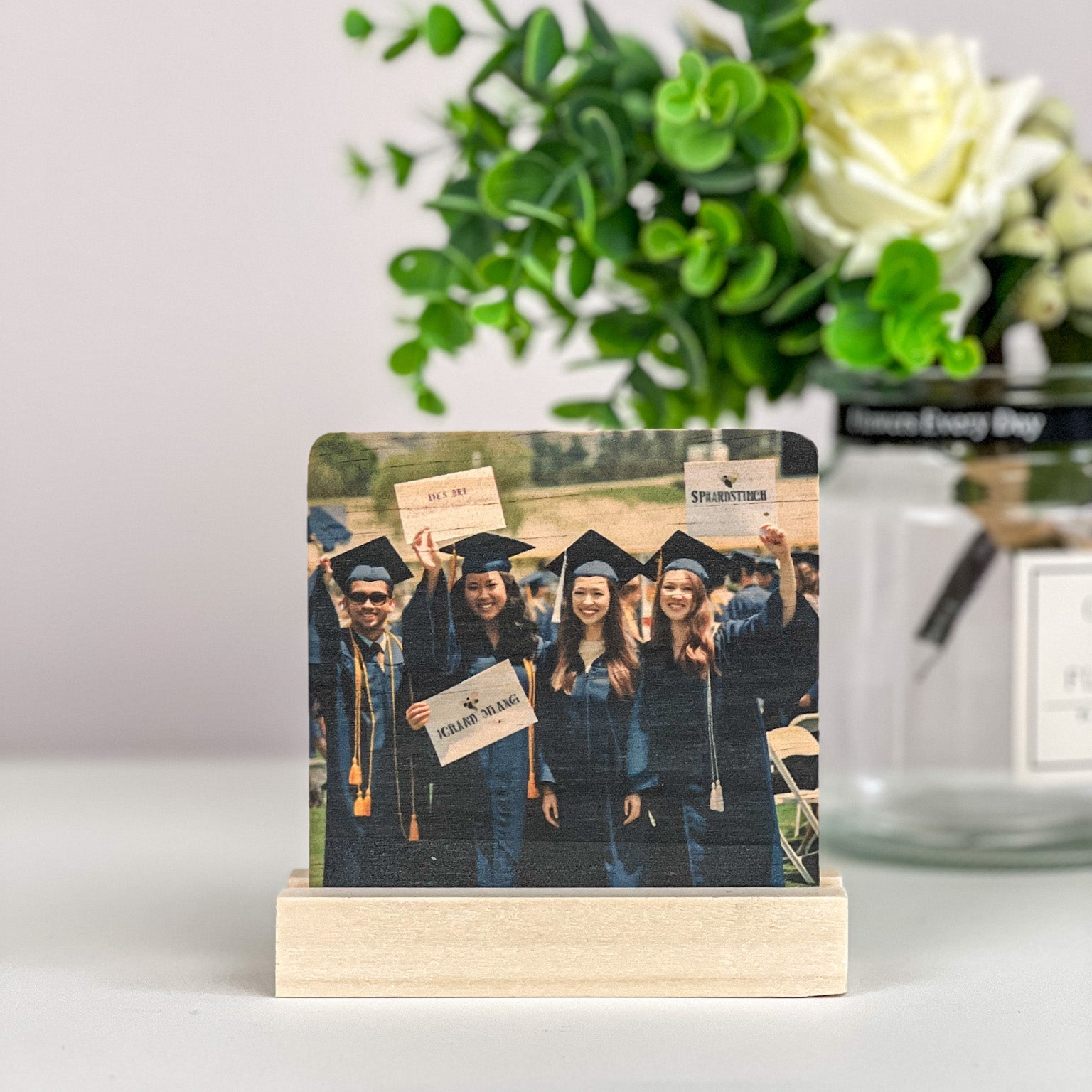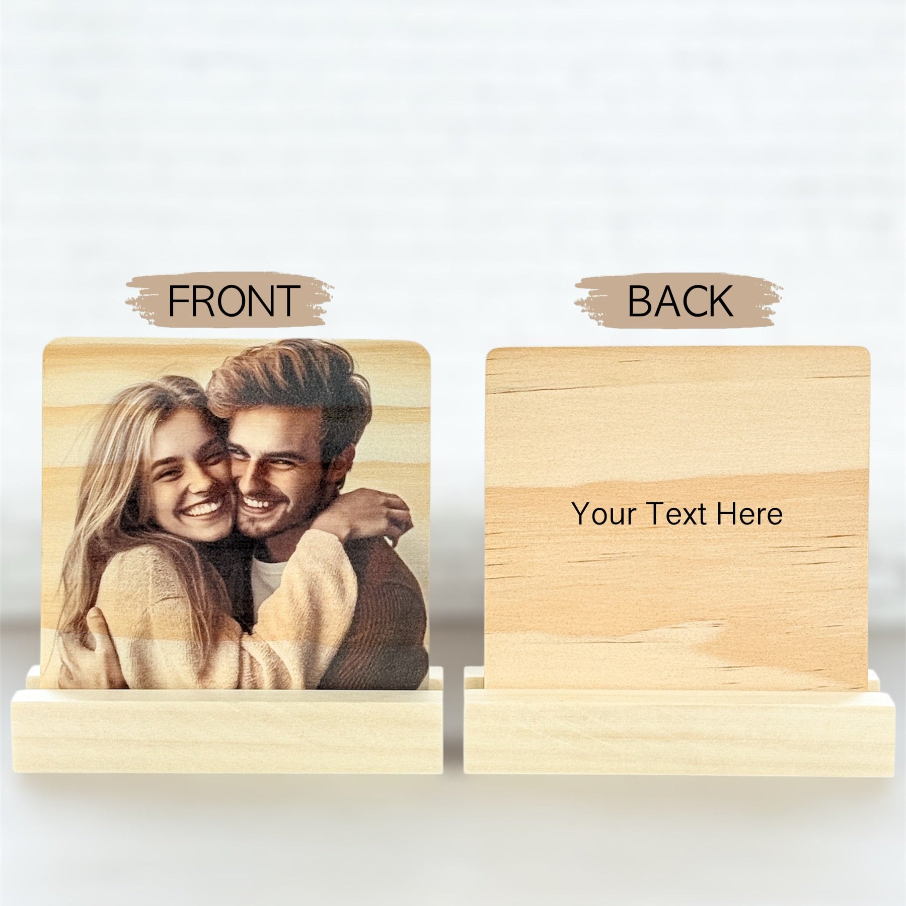 Custom Wood Photo with Stand is a stylish and modern way to display your favorite photos. Made from high-quality wood, these photo displays come with a stand that allows them to be easily displayed on any flat surface. Personalize it by adding your meaningful text on the back.